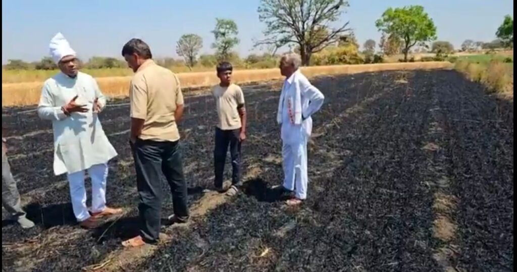 Breaking, बुलढाणातारांचे घर्षण; एकरभर गहू जळाला : Friction of wires; an acre of wheat burned Breaking, बुलढाणा / Team Mahadesha